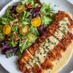 This Pretzel Crusted Chicken recipe offers a crunchy and flavorful twist on classic fried chicken, coated with crushed salted pretzels and served with a rich Dijon cheddar sauce. Perfect for a quick weeknight dinner, it combines a crispy exterior with tender, juicy chicken inside, complemented by a creamy, tangy cheese sauce.