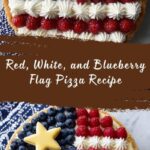 This Red, White, and Blueberry Flag Pizza is a delightful and visually stunning dessert perfect for patriotic celebrations. Featuring a sugar cookie crust, creamy sweetened cream cheese, and a vibrant topping of fresh raspberries and blueberries arranged like an American flag, this no-bake topping pizza is easy to prepare, colorful, and a crowd-pleaser for any occasion.