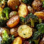 Once the potatoes and broccoli are tender and lightly browned, remove the baking sheet from the oven. Sprinkle the freshly grated Parmesan cheese evenly over the vegetables, then return the pan to the oven for 3-5 minutes to allow the cheese to melt and create a luscious golden crust.