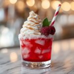 Next, dollop a generous swirl of whipped cream on top. This isn’t just about looks; the creamy sweetness balances the tang and fizz underneath, turning it into an indulgent festive treat. The whipped cream captures the essence of Santa’s fluffy hat right on your glass.