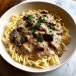 - Serve: Garnish the stroganoff with chopped fresh parsley and serve over cooked egg noodles or rice for a complete meal.