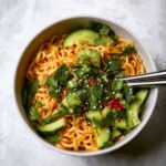 For an impressive presentation, serve the noodles in individual bowls and arrange cucumber slices on top in a fan shape. Use colorful bowls to show off the vibrant noodles and sprinkle garnishes in a pattern rather than scattering. You can even serve it cold as a refreshing summer salad, which makes the spicy peanut noodles with cucumber recipe versatile and perfect year-round.