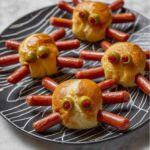For an unforgettable presentation, arrange your spider hot dogs on a platter designed to look like a spider web using thin lines of mustard or ketchup. You can even nestle them into a bed of shredded lettuce or kale to mimic a creepy forest floor. If serving kids, set up a little “spider den” using edible Halloween decorations to make the experience immersive and super fun.