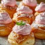 - Top and garnish: Place the top halves of the puffs back on, dust generously with powdered sugar, and optionally garnish with fresh mint leaves for a fresh touch.