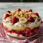 This refreshing Strawberry Crunch Banana Pudding is a delightful layered dessert combining creamy banana-flavored pudding with fresh strawberries and bananas, topped with a crunchy mixture of crushed vanilla wafers and freeze-dried strawberries. Perfect for a crowd-pleasing treat, it requires no baking and is ready to enjoy after chilling.