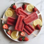 These popsicles pair beautifully with light summer dishes. Think fresh fruit salads, simple green salads with citrus vinaigrette, or even a delicate cheese platter—all of which help accentuate the bright flavors of the strawberry lemonade.