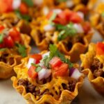 Taco Ranch Bites are delicious mini crescent roll cups filled with seasoned ground beef and melted cheese, topped with ranch dressing and sour cream. Perfect as a flavorful appetizer for parties or casual gatherings, these bite-sized treats combine Tex-Mex spices with creamy toppings and fresh garnishes for a crowd-pleasing snack.