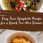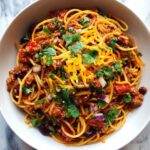 This Taco Spaghetti Recipe is a delicious Tex-Mex inspired twist on classic spaghetti. Combining the bold flavors of taco seasoning, diced tomatoes with green chiles, and a blend of cheddar and Monterey Jack cheese, this easy weeknight dinner brings together tender pasta and savory ground beef in a creamy, cheesy sauce. Perfect for families and meal prep, it’s quick to make on the stovetop and can be customized with ground turkey, corn, or black beans for added texture and flavor.