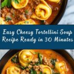 A comforting and hearty Tortellini Soup made with tender vegetables, flavorful herbs, and cheesy tortellini simmered in a savory broth. Ready in just 30 minutes, this soup is perfect for a quick lunch or dinner and can easily be made vegetarian by using vegetable broth.