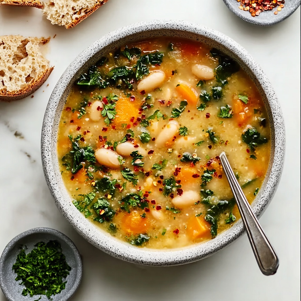 Finally, stir in the finely chopped kale and let it simmer for a few more minutes. The kale will soften and become tender, contributing a fresh burst of color and a mild earthiness that balances the creamy beans beautifully. Give the soup a final taste and tweak the seasoning as needed — sometimes a little extra salt or a squeeze of lemon juice can brighten everything wonderfully.