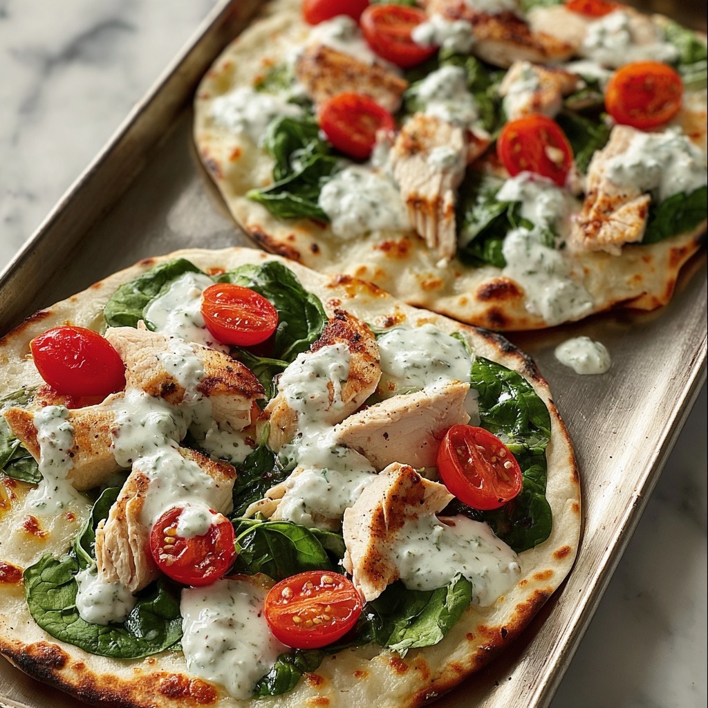 This Tzatziki Chicken & Veggie Naan Pizza is a delightful fusion dish that combines the creamy tang of tzatziki sauce with tender chicken, fresh spinach, and juicy cherry tomatoes atop warm, crispy naan bread. Ready in just 22 minutes, this easy-to-make pizza offers a flavorful and satisfying meal perfect for a quick lunch or dinner.